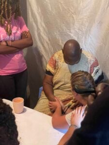 This is a photo of me praying over one of the moms from Thriving Hope during a home visit.